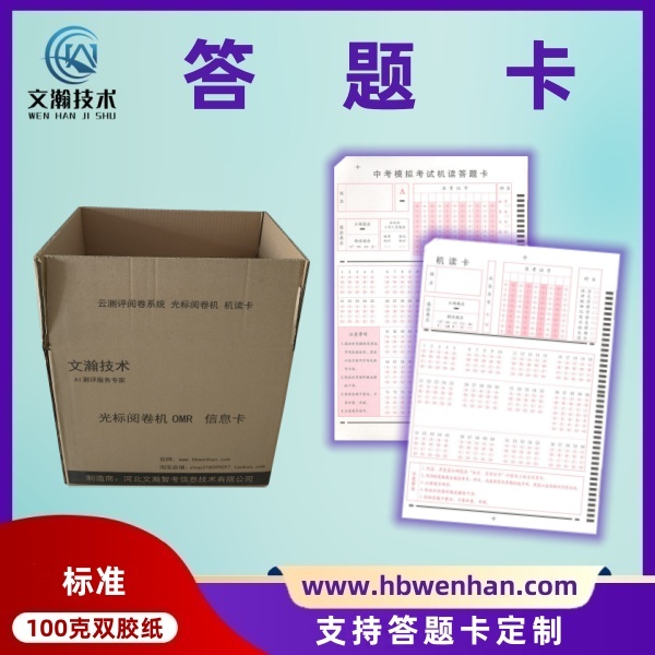 8K答题卡-------8开尺寸为372mm×260mm,相当于2张A4纸大小,此类光标阅读机用于信息量特别大的应用,如统计局、房管局的入户调查。还有64K答题卡,尺寸为32K一半大小,用于30道题左右的临堂测验,或者特殊应用,如出入境的信息采集、彩票等。平时应用多的答题卡一般为32K或16K。