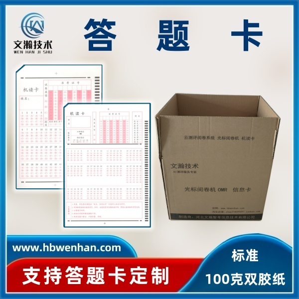 答题卡(又称信息卡),是光标阅读机输入信息的载体,是配套光标阅读机的各种信息录入表格的总称。信息卡将用户需要的信息转化为可选择的选项,供用户涂写。OMR设备根据信息点的涂与未涂和格式文件设置将信息还原。